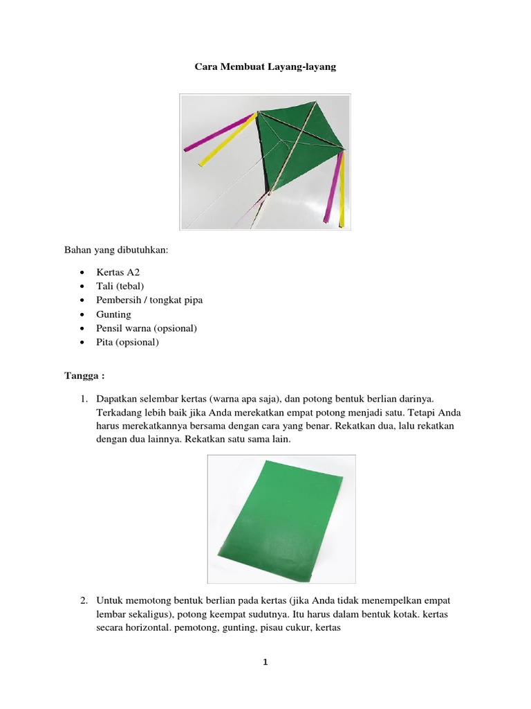 Kertas bentuk segi empatbelah ketupat Anda bisa mengelem 4 helai kertas berukuran 20x30 cm untuk membuat layang-layang yang lebih besar. Cara Membuat layang-layang sederhana. Potong kertas minyak sesuai pola dan lem kertas pada bagian rangka memakai solasi.