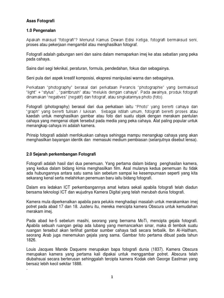 Salah satu seni di era moderen ini mampu mengabadikan segala momen yang ada di dunia bahkan luar angkasa dengan sekali jepret. Hal Ehwal Murid. Kertas kerja ini dikemukakan bertujuan untuk memohon tajaan dan.